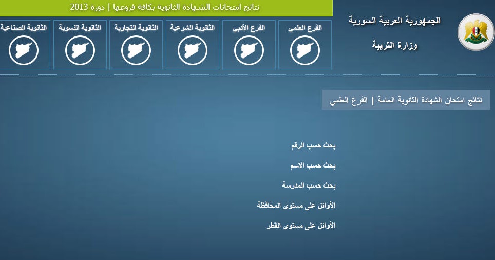 موقع وزارة التربية السورية رابط نتائج البكالوريا في سوريا 2018 الدورة الثانية حسب الاسم ورقم الاكتتاب جميع الفروع